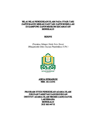 Anisa Humairoh (2025): Nilai-Nilai Pendidikan Islam Pada Syair Tari Zapin Masjid Mekah Dan Tari Zapin Bismillah Di Kampung Zapin Meskom Kecamatan Bengkalis